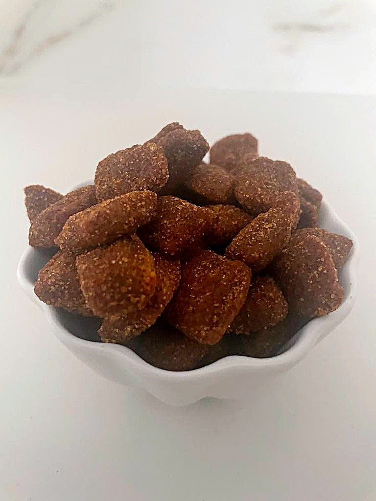 Delicious bites of spicy tecojote, a Mexican fruit reminiscent of plum and apricot. This cream colored fruit has a sweet and sour taste to it and is bound to give a twist to your tongue!