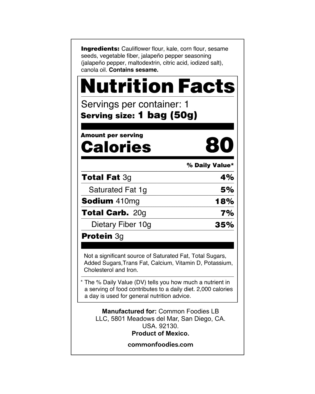 Seasoned with jalapeno powder, these give you a tasty veggie chip that is guilt free.